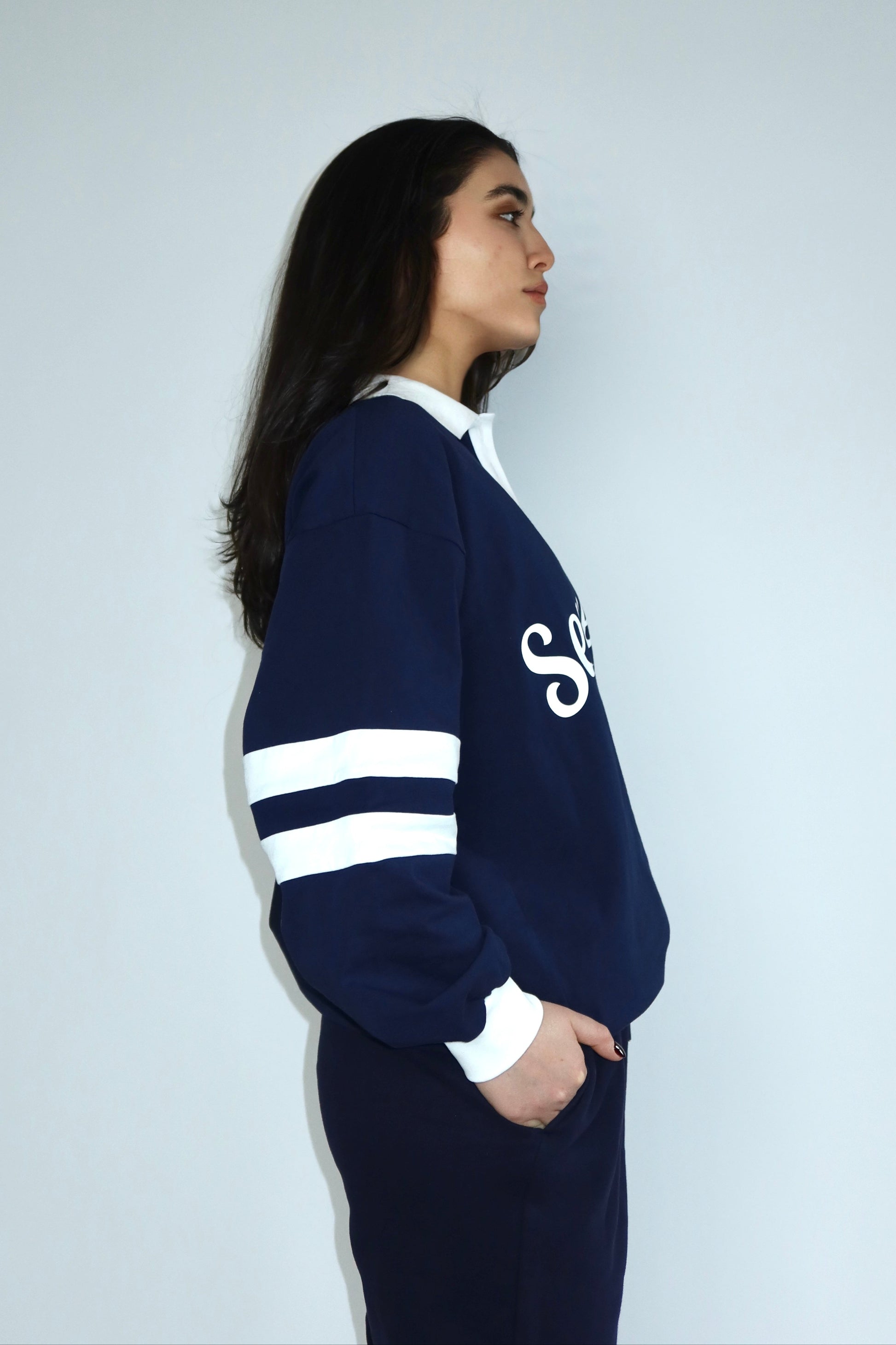Model Details: Soraya is 5'5" and wearing a size medium. This rugby polo has an oversized fit.